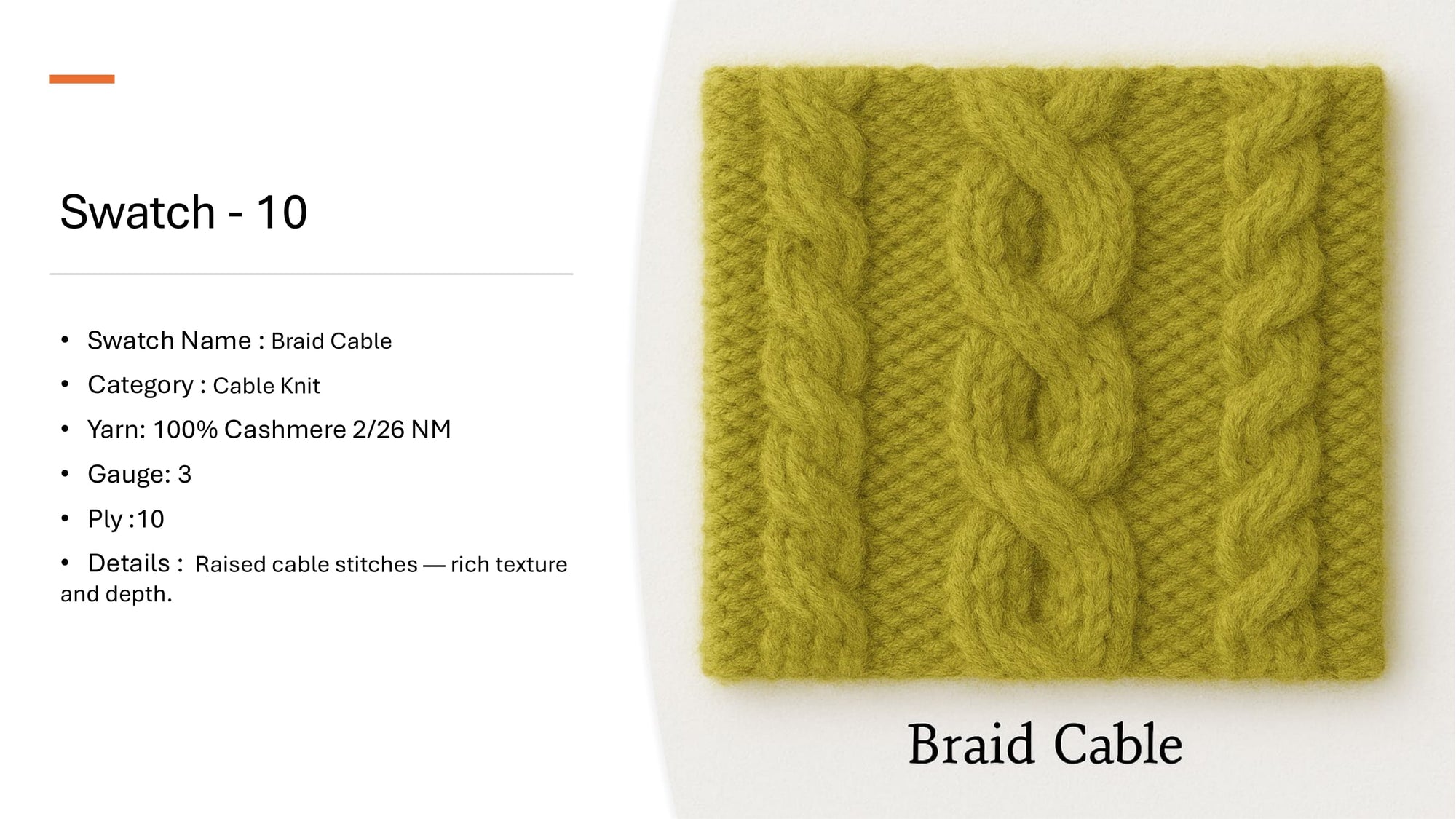 The braid cable swatch showcases depth, movement, and the sculptural beauty of knitwear. Part of our FW 2026–27 development, it belongs to an exclusive archive of 335+ swatches, reflecting Kanchan Cashmere’s commitment to innovation and artisanal mastery. Each cable is not just a stitch but a narrative of heritage reimagined for contemporary luxury.